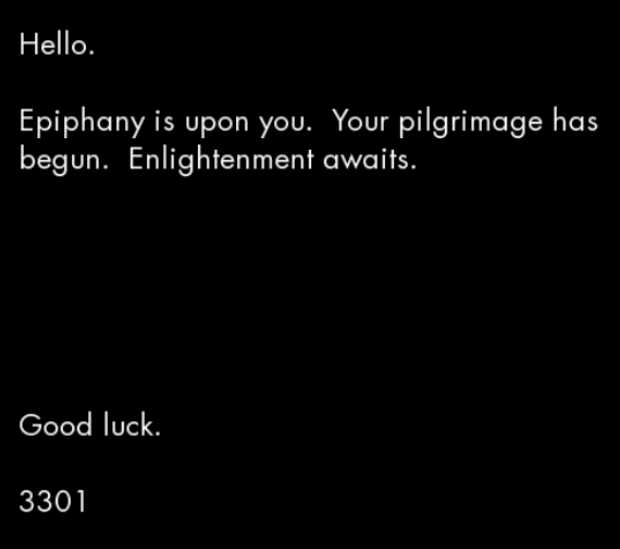 “Hello. We are looking for highly intelligent individuals. To find them, we have devised a test. There is a message hidden in this image. Find it, and it will lead you on the road to finding us. We look forward to meeting the few that will make it all the way through. Good luck.” That message, signed “3301,” appeared on the underground message board known as 4chan two years ago. It was mysterious, cryptic and sparked a global Internet mystery that has yet to be answered to this day. (via The Internet’s Cicada: A Mystery Without An Answer : NPR)