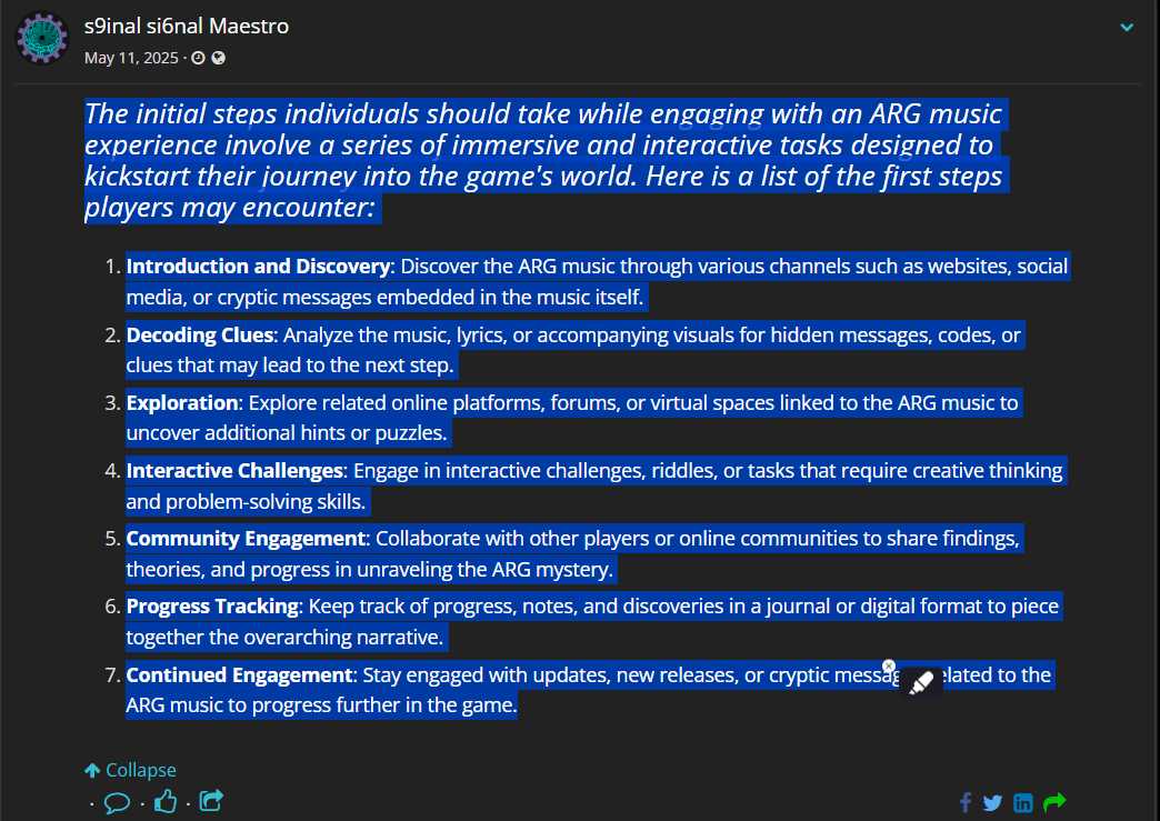 Organize virtual listening parties or webinars that delve into the deeper layers of the ARG music experience, fostering a sense of tranquility and reflection.