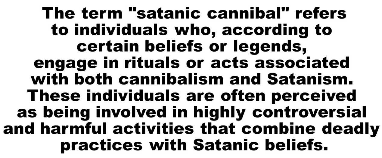 The term "satanic cannibal" refers to individuals who, according to certain beliefs or legends, engage in rituals or acts associated with both cannibalism and Satanism. These individuals are often perceived as being involved in highly controversial and harmful activities that combine deadly practices with Satanic beliefs.
